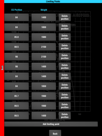 - When you enter it for the first time for a particular aircraft, you'll have to set up some information relating to the loading schedule (what the loading points are for your aircraft), and the limiting points (the envelope that your load must fit into). If we've confused you with those terms, don't worry. If you've ever prepared a paper W & B calculation before, then these will become very obvious to you as we work through this tutorial.